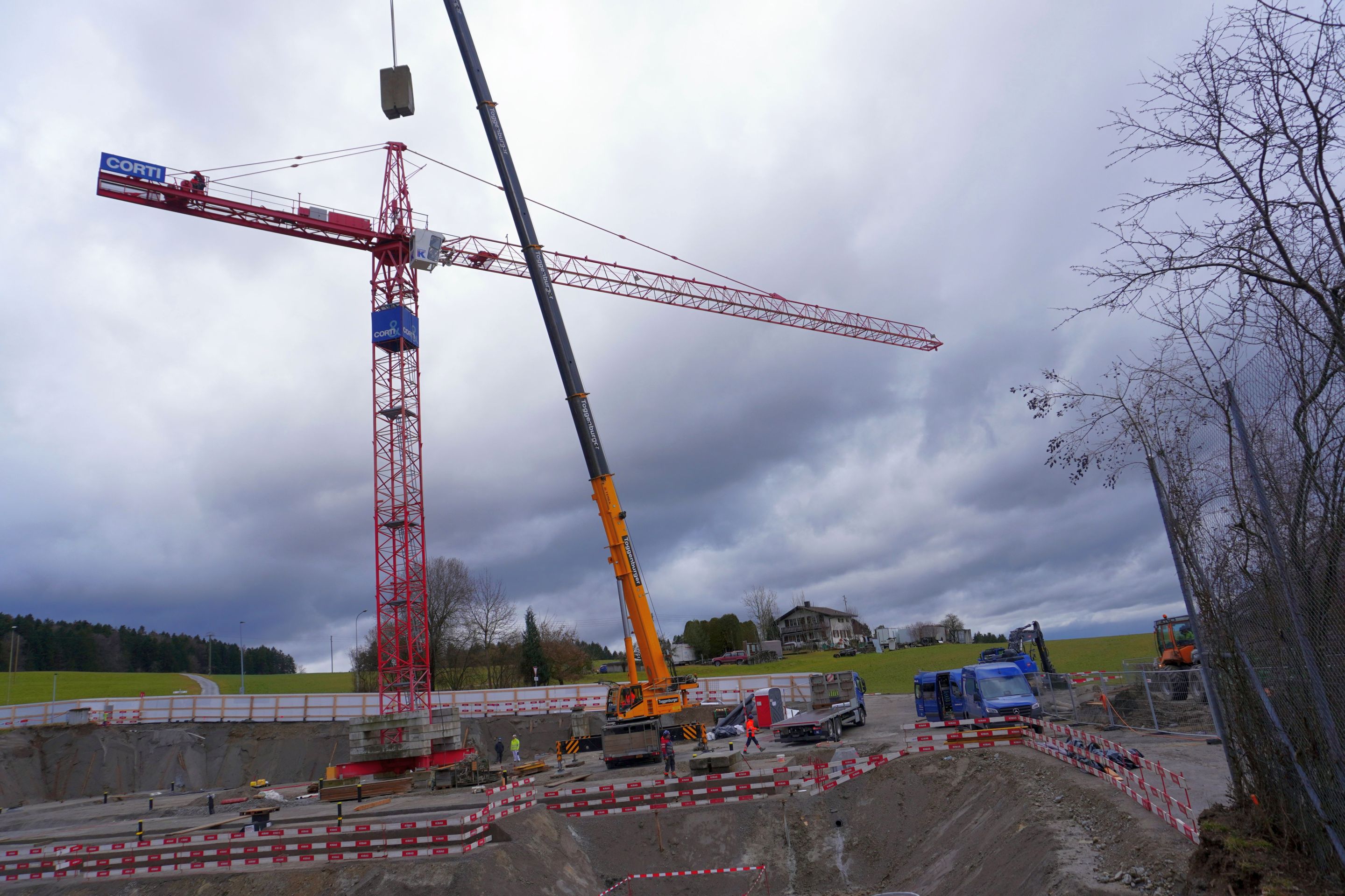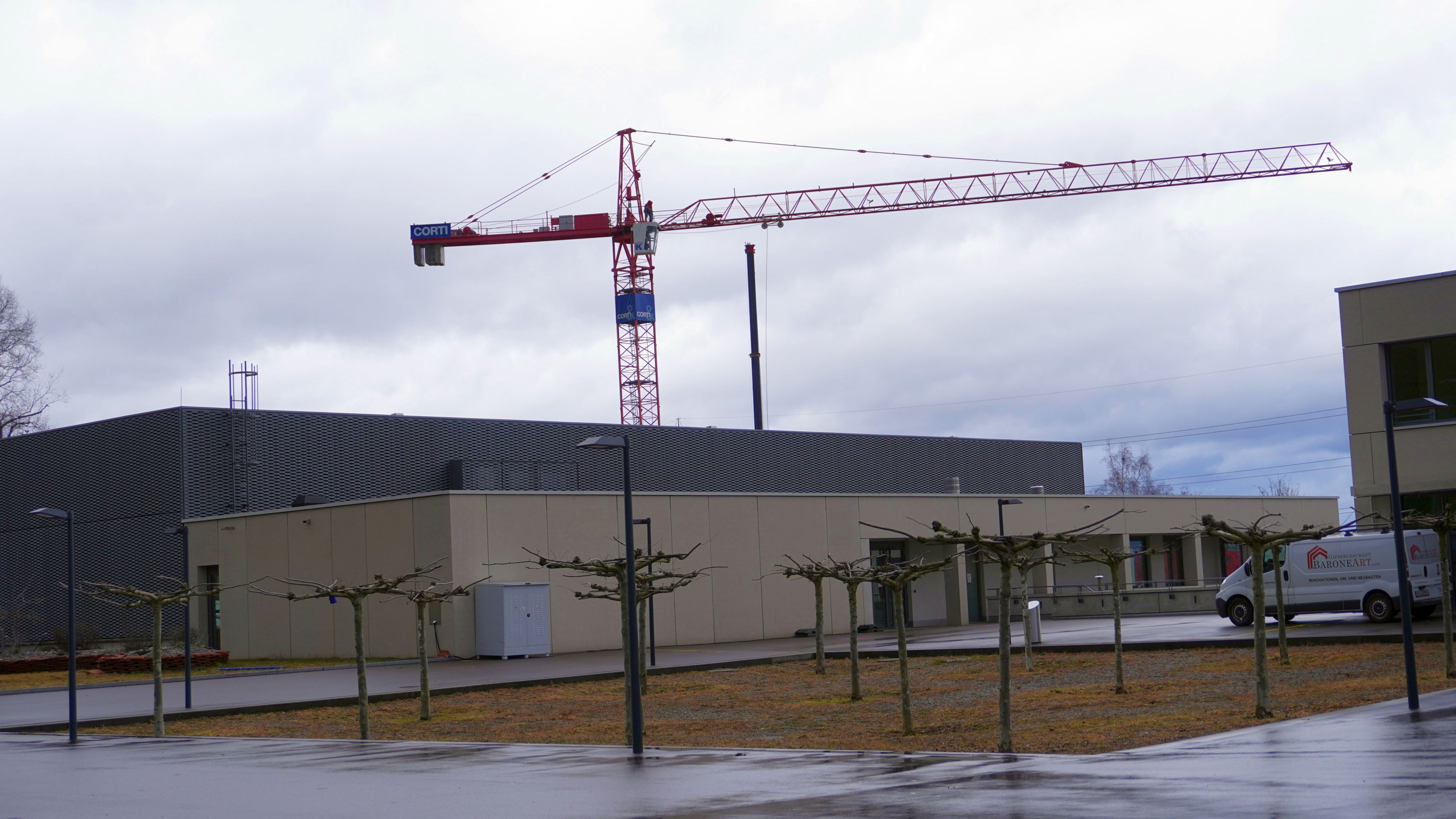 Die Arbeiten für das neue Bevölkerungsschutzgebäude (BSG) sind einen Schritt weiter. In den Sportferien wurde auf der Baustelle der Kran gestellt. In den nächsten Monaten liegt der Schwerpunkt nun darauf, den Rohbau des BSG zu erstellen. Damit wird das neue Gebäude dann auch Gestalt annehmen, nachdem bisher vor allem die Baustelleninstallation und die Tiefbauarbeiten im Vordergrund gestanden waren.